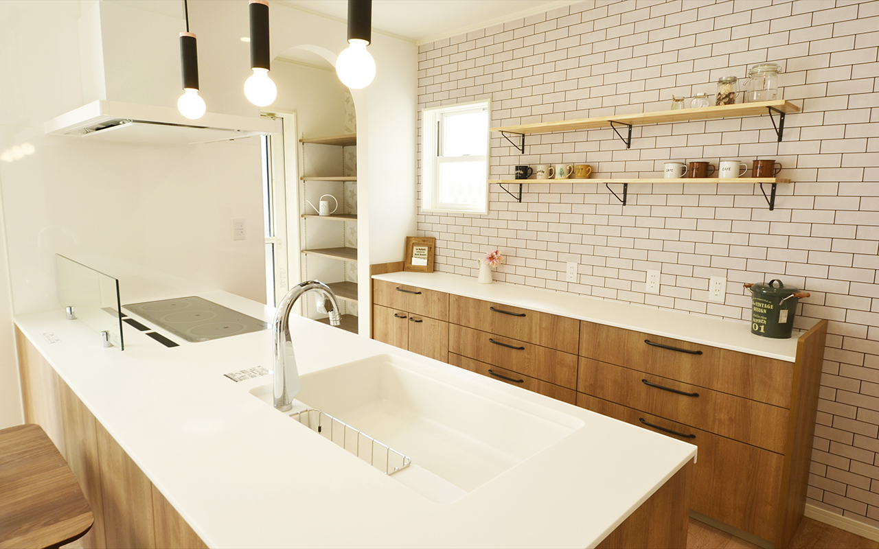 キッチン・台所かわいい の建築事例・施工実例・価格注文住宅。
