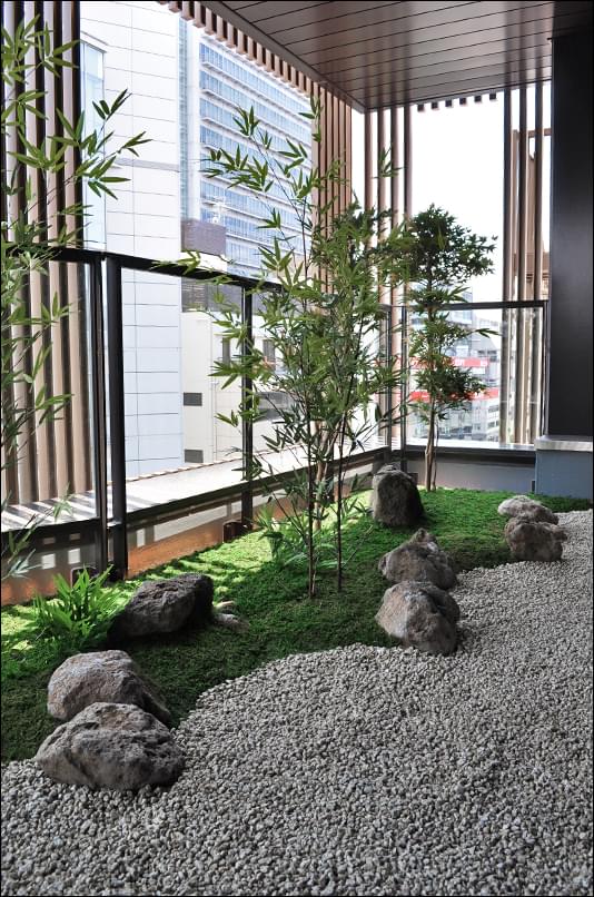 タワーマンションのバルコニーに和風情緒を感じる坪庭を-港区マンションT様邸小さな庭や坪庭の施工例,マンション専用庭・ベランダ・バルコニーでの造園千葉県 東京都の造園 植栽 庭施工造園業専門店 新美園。