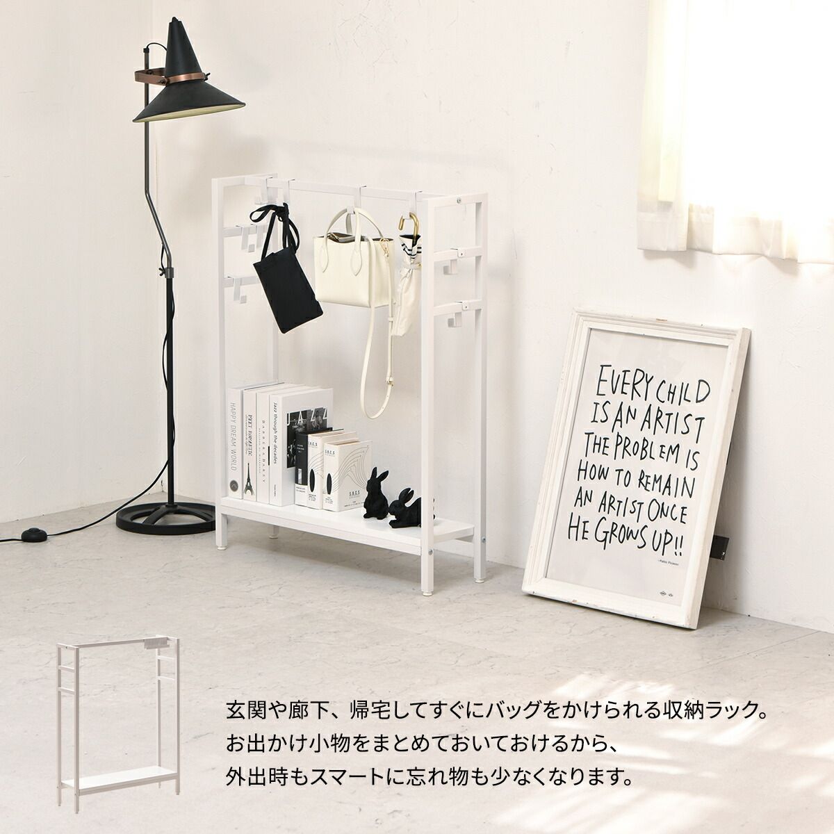 カバン掛け 収納 ラック フック 置き台 玄関 伸縮式 おしゃれ 白 ホワイト 鞄 かばん かけ。