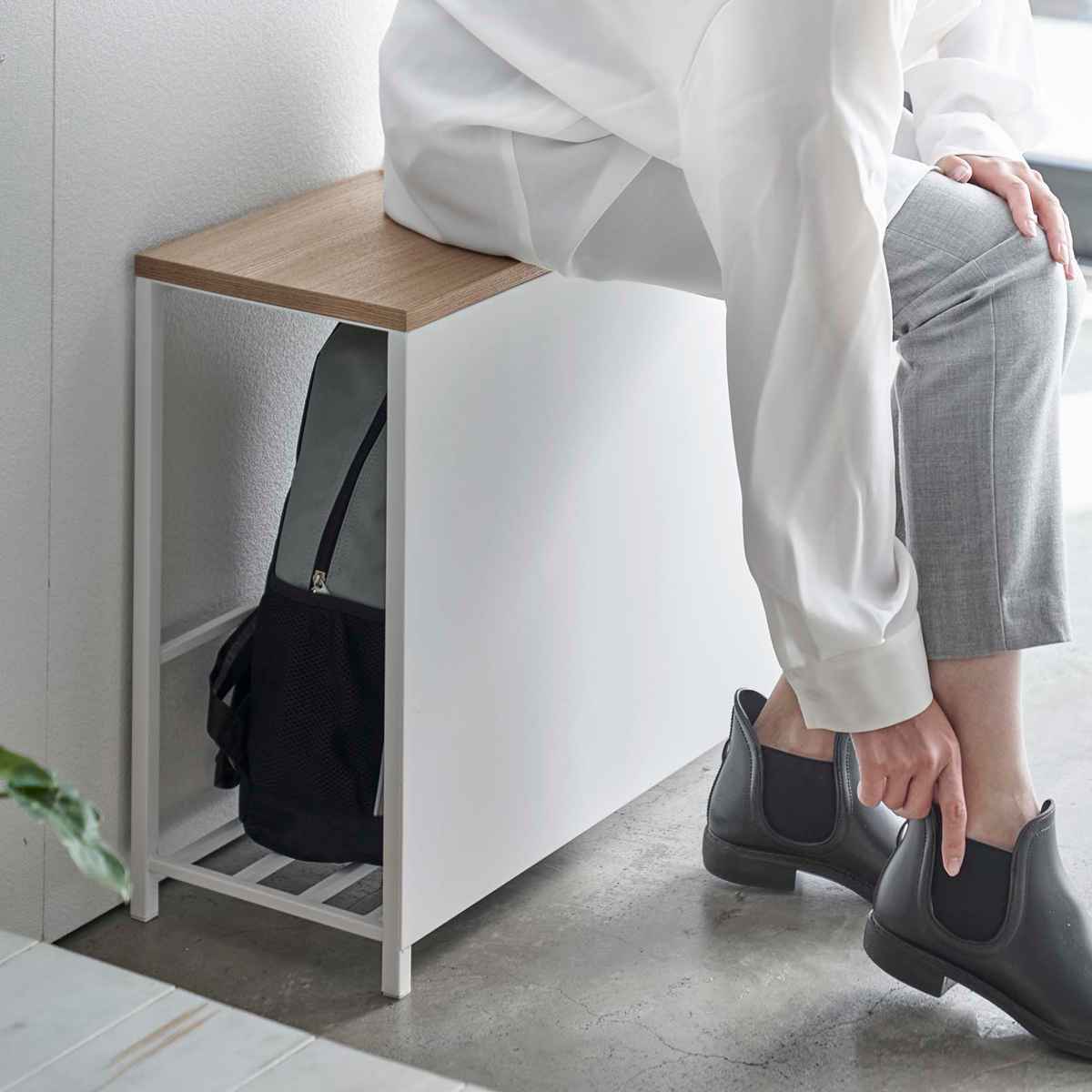 tower 玄関ベンチ 幅60cm 防災バッグ収納付き収納付き玄関ベンチ タワー 567 山崎実業 玄関 ベンチ 椅子 イス 腰掛け 玄関収納収納 スツール 踏み台 山実 木目 省スペース 収納ラック チェア 靴 おしゃれ シェルフブラック :リビングート JREMALL店通販JRE。