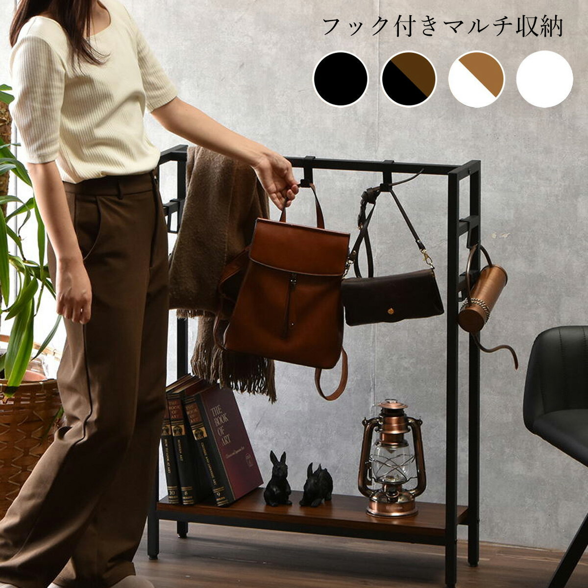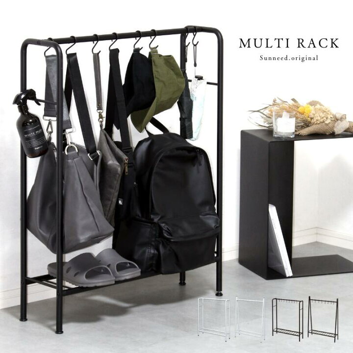 バッグ 収納 ハンガー マルチラック ハンガーラック 玄関 収納 ラック かばん スリム 省スペース 棚付 幅70 奥行20 ブラック ホワイト玄関ラック おしゃれ スリム 男前インテリア シンプル デザインインテリアショップフィット。