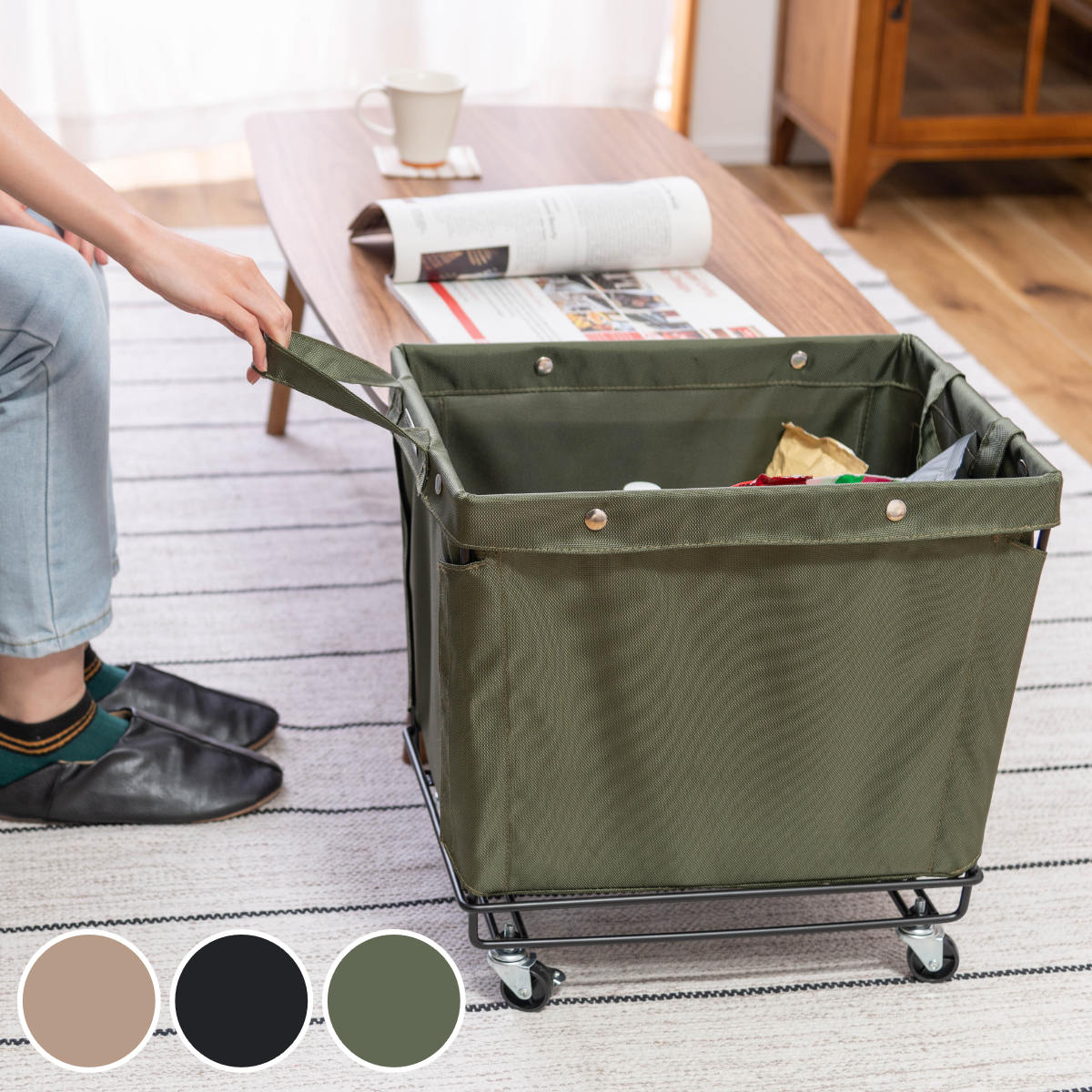 バスケットワゴン キャスター付きバスケット ワゴン 収納 ランドリーバスケット 軽量 かばん置き リビング収納 かばん収納 おもちゃ箱 脱衣所玄関収納 小物入れ 底板付き 収納ケース 収納ボックス おしゃれ マガジンラックベージュ。