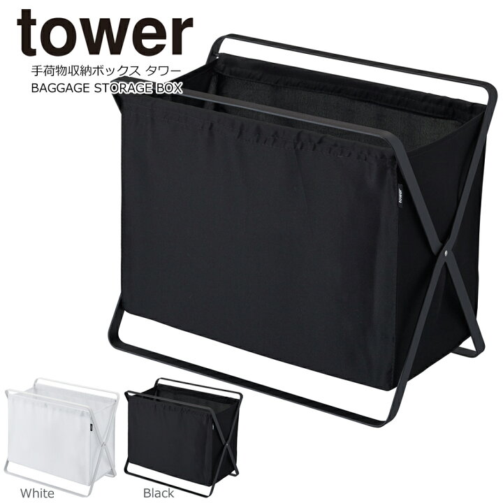 山崎実業 yamazaki tower 手荷物収納ボックス タワーカフェ 荷物置き おしゃれ シンブル 折りたたみ カゴ 玄関 収納ランドリーバスケット スリム 布 ホワイト ブラック YAMAZAKI タワーシリーズ 3544 3545山崎実業店舗什器・店舗備品のハンガー&インテリア。