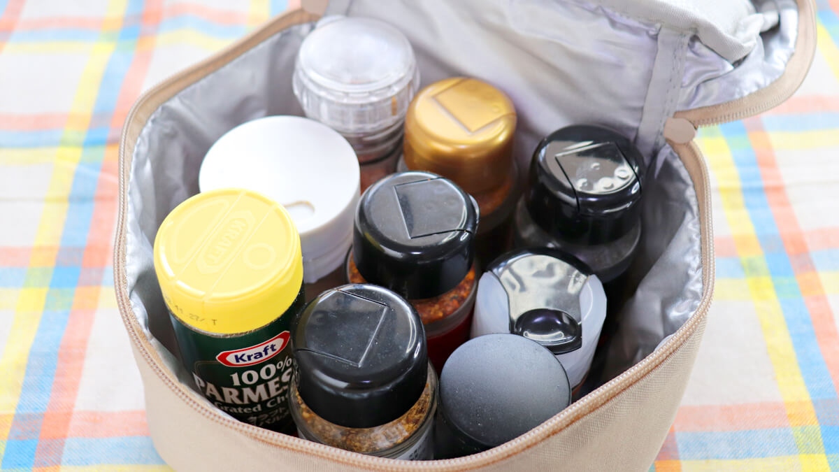 スリコのバッグに調味料を 調味料入れ スリーコインズ。