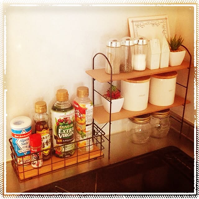 これぞ魅せる収納!3COINS「ミニシェルフ」でほっこり系キッチン♪ - macaroni。