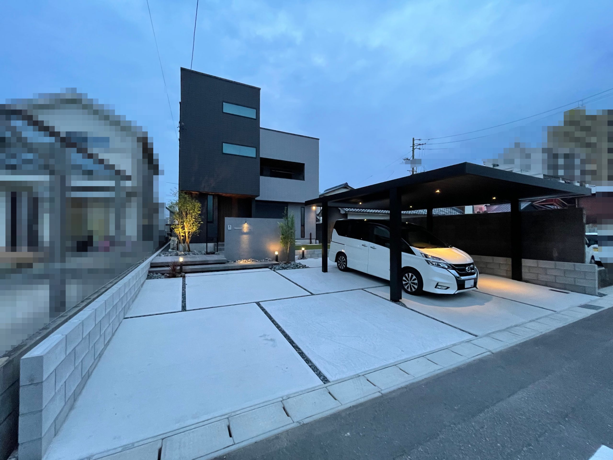 金沢市の新築外構で注目のおしゃれな土間コンクリートアプローチ外構工事Column石川県金沢市の外構なら株式会社E.S.I。