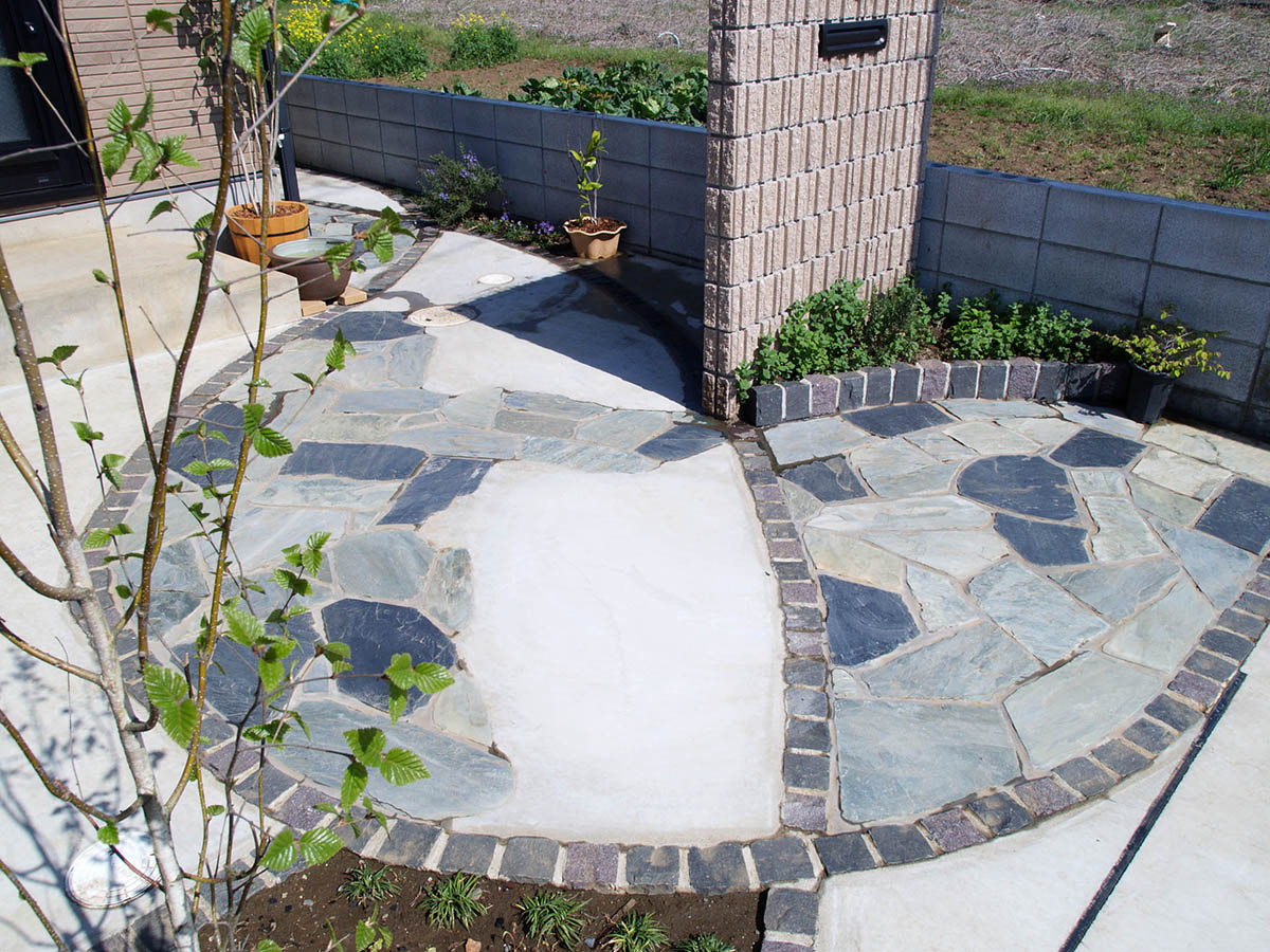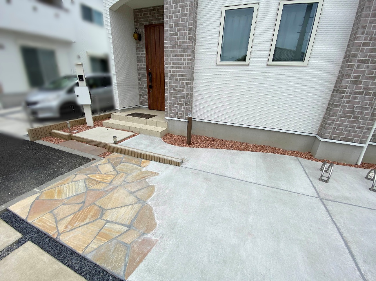 デザイン性あふれるスタンプコンクリート香川県 自社施工外構工事・エクステリア工事吉村建設。
