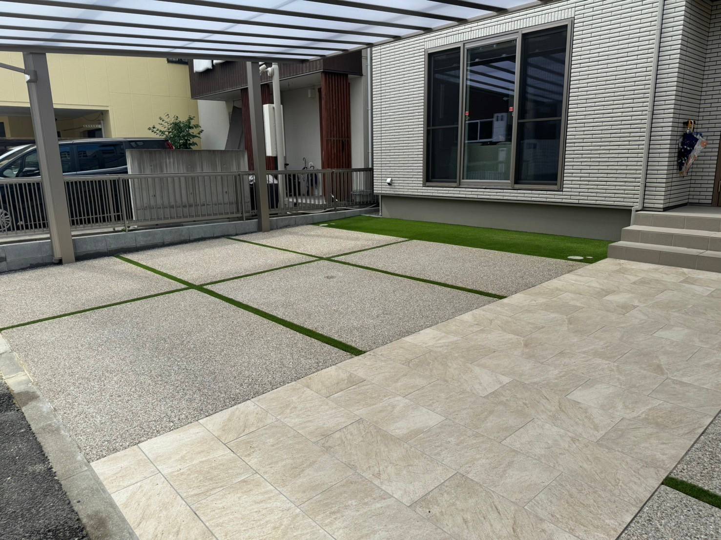 コンクリートに緑をプラスして、おしゃれな駐車場空間に兵庫・大阪外構・庭工事。