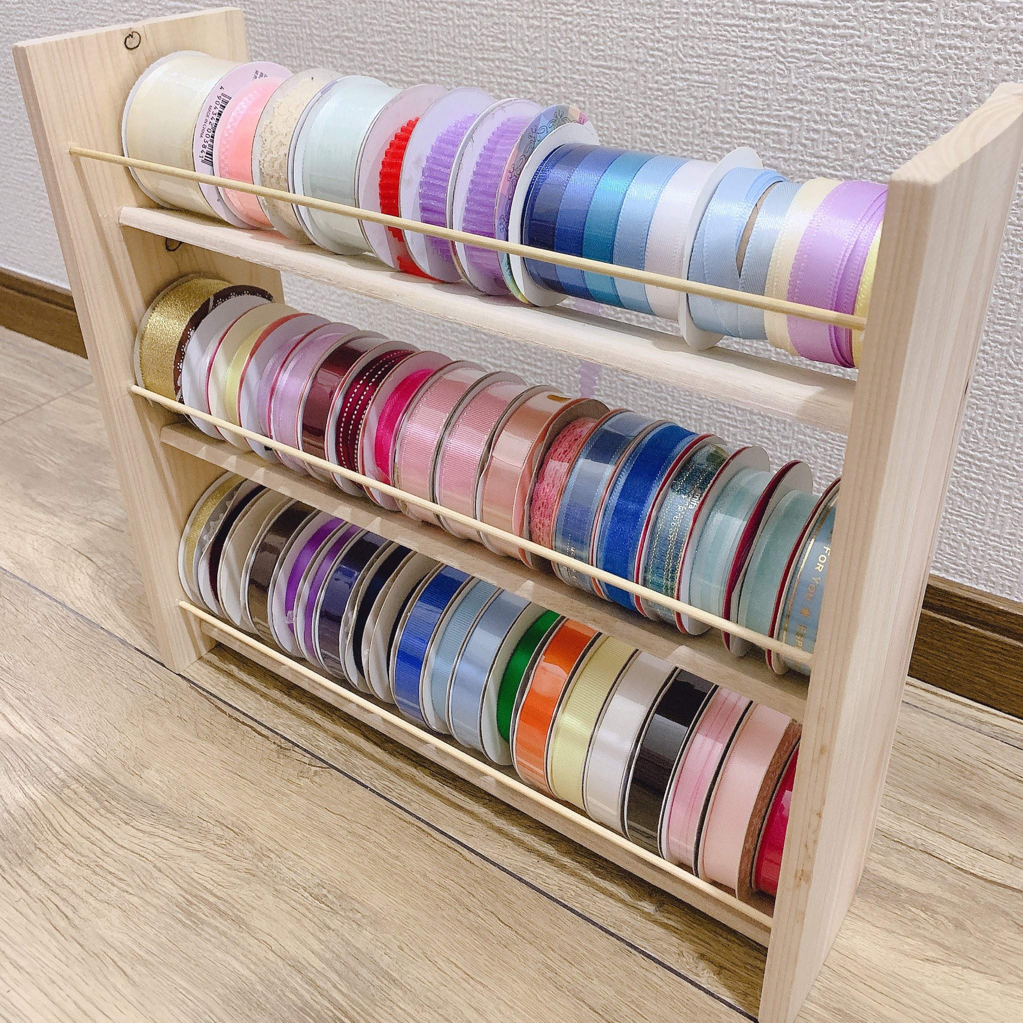 うぱるぱみん🎀 on X: "100均のすのこと竹ひごと板でリボン収納できる棚できた!DIY女子✨✨ けどこれでも足りないくらいリボンあってびっくり´-`https:t.co LIPgwYmOLx"X。