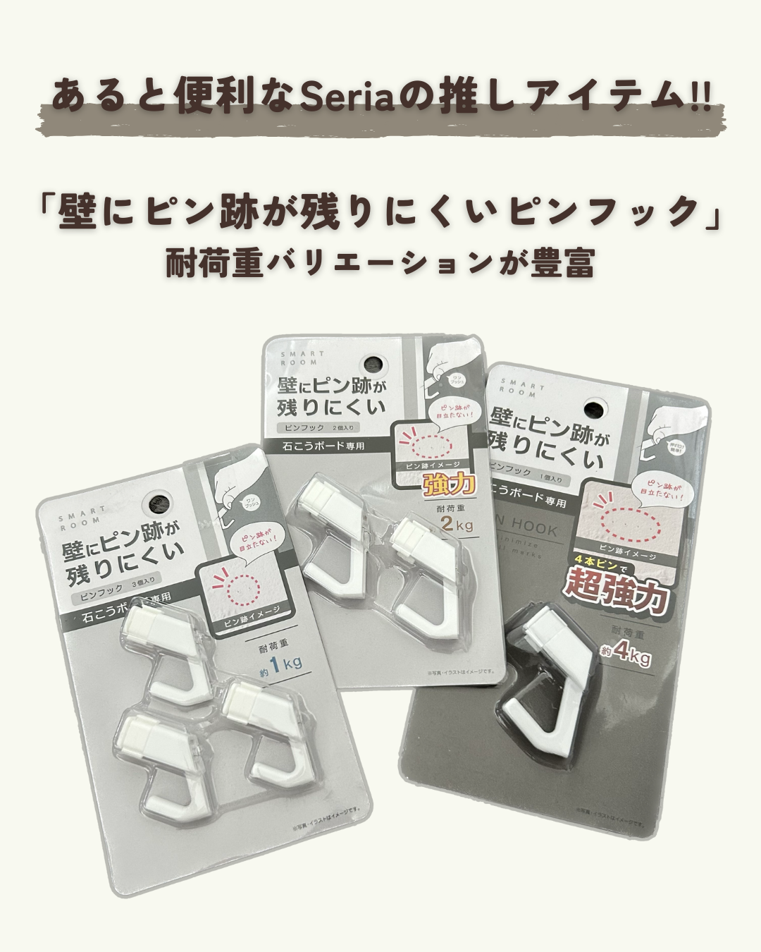 セリア あると便利な推しアイテム 壁にピン跡が残りにくいピンフックwakamechanLife 〜子育てライフを豊かに。