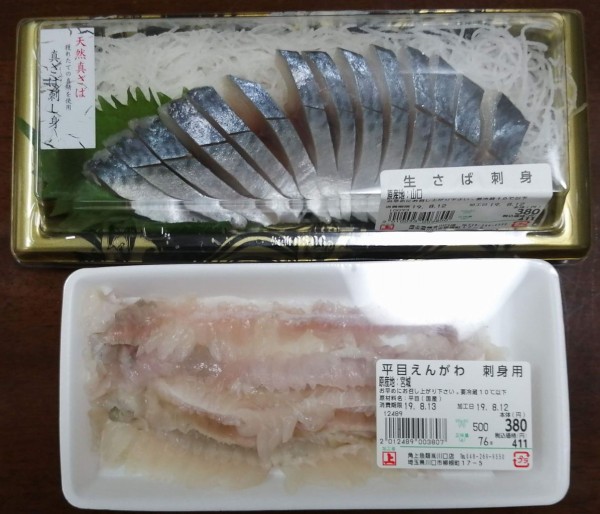 角上魚類さんでヒラメの縁側と鯖の刺身 : 釣~るズ。