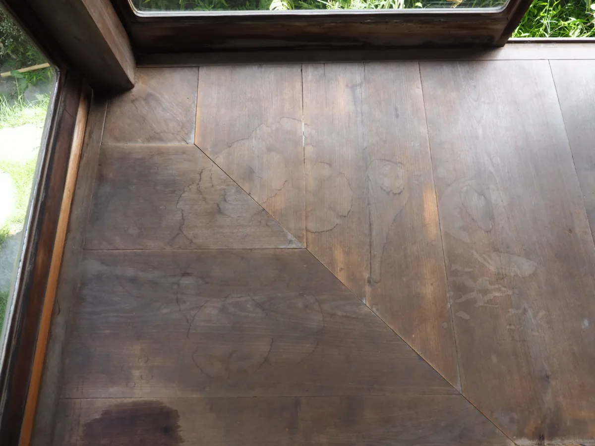 成瀬夏実 on X: "切り目縁じゃないと豆腐板にはならないんだ !切り目縁っていうのは、建物に対して直角に板を並べる形式。昔は縦引きのノコギリがなかったので、薄い板をつくることが難しかったため、床板が厚いものが普通だった。豆腐板ってのは、 縁側の角が四角く。