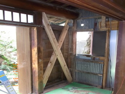 縁側81:サッシのガラス戸入れと旧雨戸の撤去 2017 10 17古民家改修を終えた後は野鳥観察。