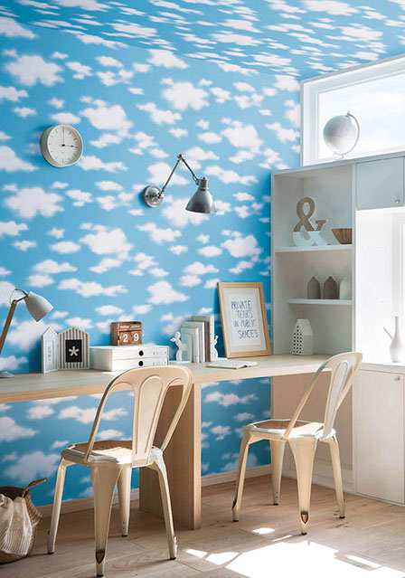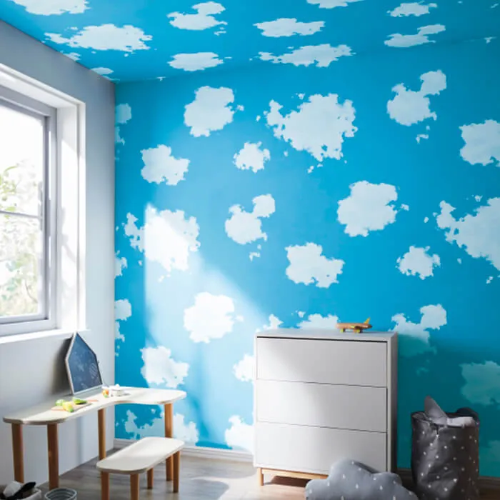 太陽住宅 on Instagram: “子供部屋 空をイメージしたクロスは雨の日でもさわやかでワクワクする子供部屋になりました。ピンタレストもやってます↓ https:www.pinterest.jp taiyojuutaku@taiyorhythm ”子ども部屋壁紙, 部屋壁紙 おしゃれ, 子供部屋。