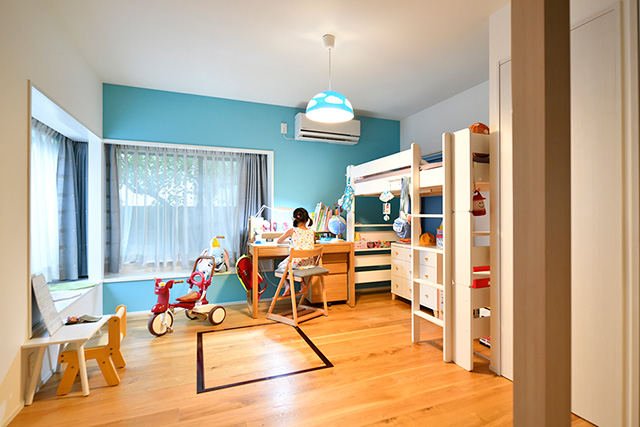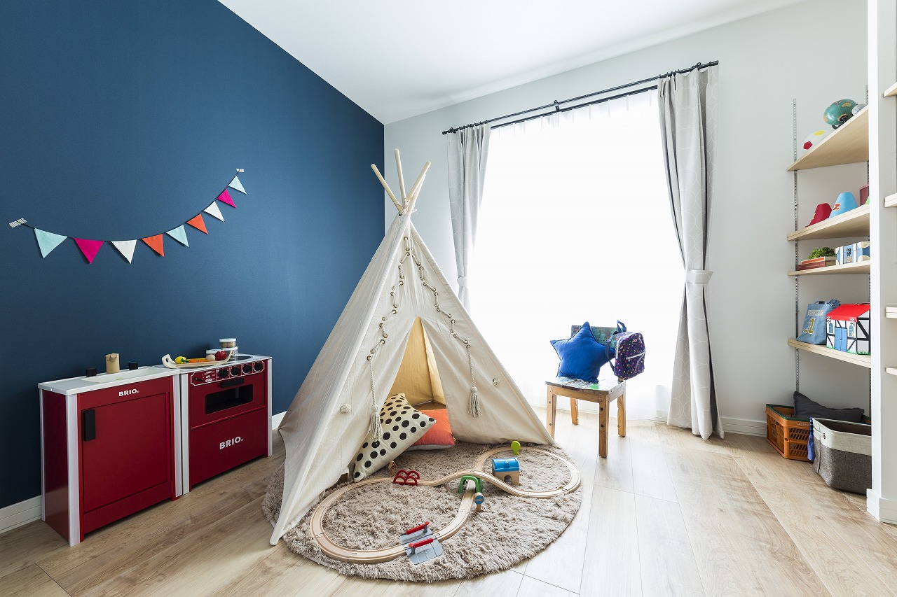 ブルーのアクセントクロスの子供部屋子供部屋施工例ギャラリーケイアイプレストは新築一戸建・土地販売の不動産会社。ケイアイスター不動産グループ。