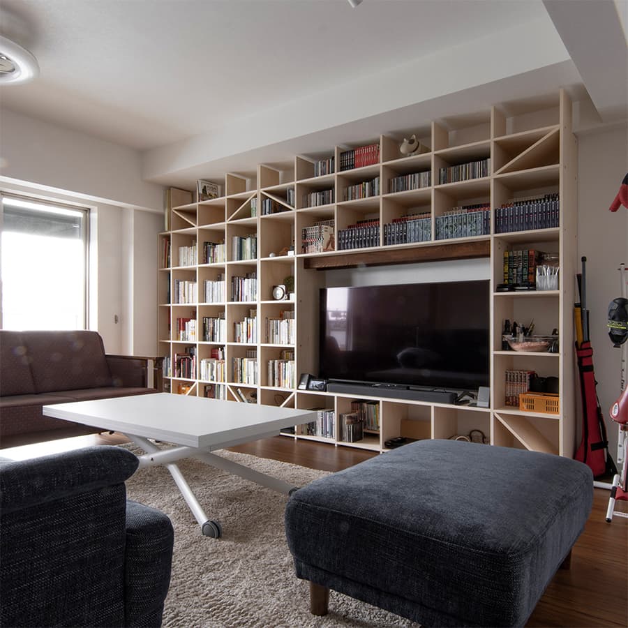 本棚の中でくつろぎたい。そんなイメージを叶えたリビング収納。 - オーダー家具・壁面収納・収納ラボ。