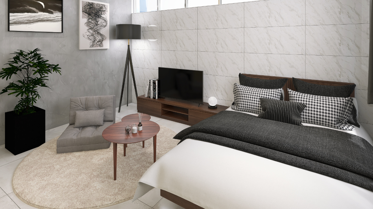グレー×モノトーンで作る!>モダン空間の一人暮らしリビング!カヴァースインテリア。