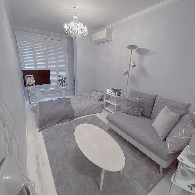 リビング グレーインテリア 6畳1K モノトーン ホワイトインテリア などのインテリア実例 - 2018-11-04 18:23:32RoomClip ルームクリップ。