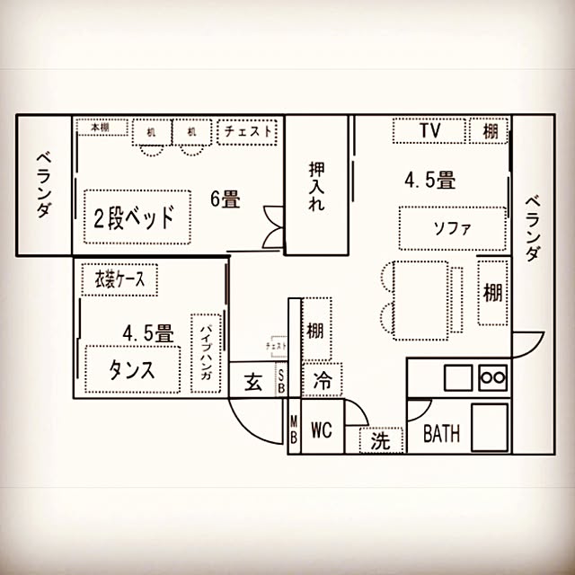 間取り図 団地のレイアウト・おしゃれなインテリアコーディネートの実例RoomClip ルームクリップ。