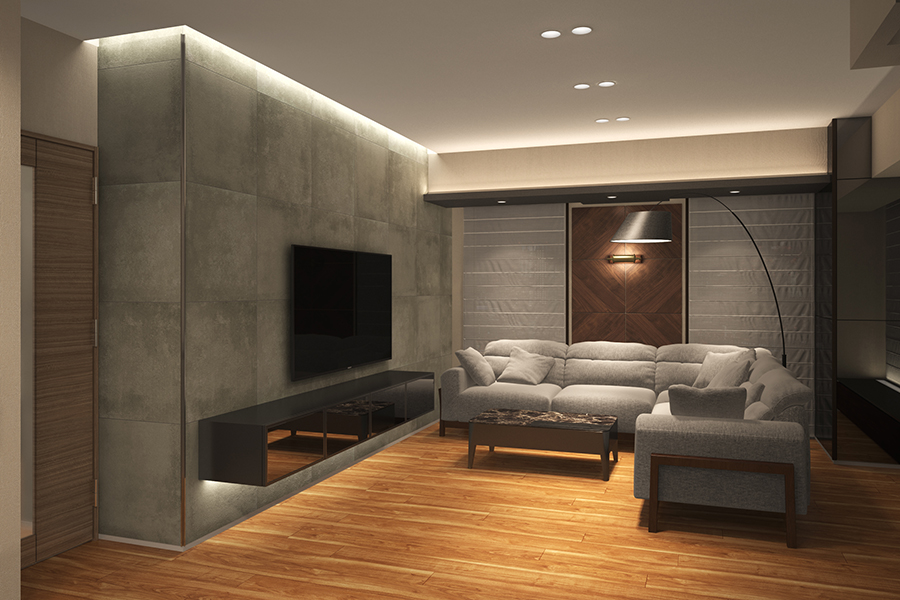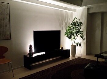 壁掛けテレビの裏×間接照明を設置」でリビングを幻想的な空間に。