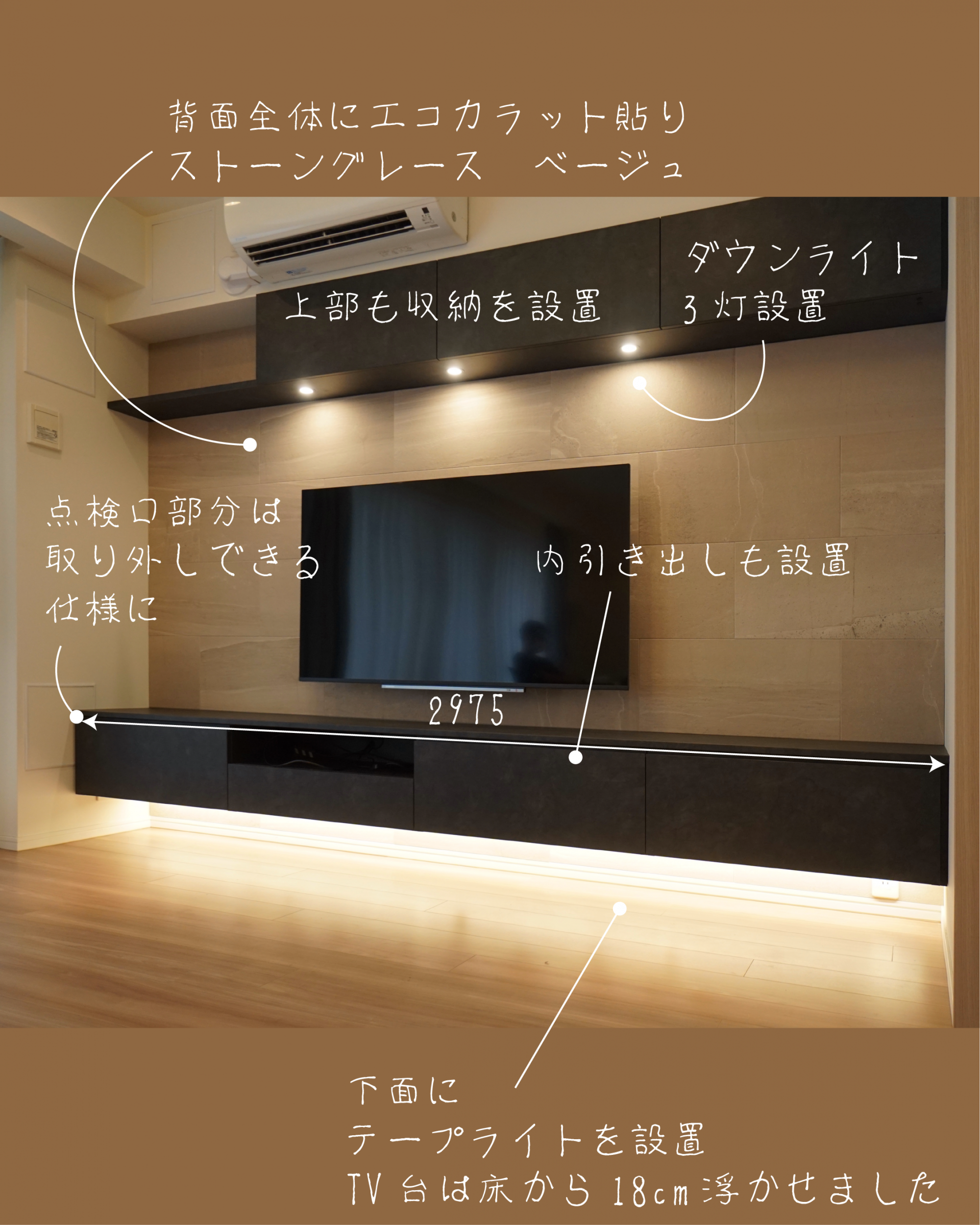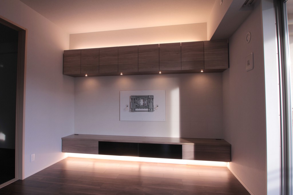 マンションに施工した間接照明付きのフロートタイプのテレビボード愛知県 名古屋市名古屋のオーダー家具とインテリアコーディネートなら LUFT 愛知県。