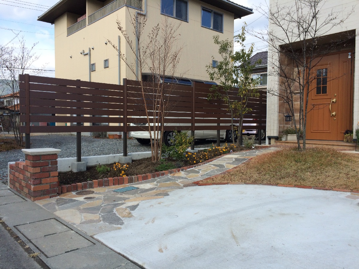 洋風のおしゃれな目隠しフェンスが完成しました! -目隠しスクリーンの施工例- — 岡谷市の庭づくり・外構・ガーデニングの専門店。