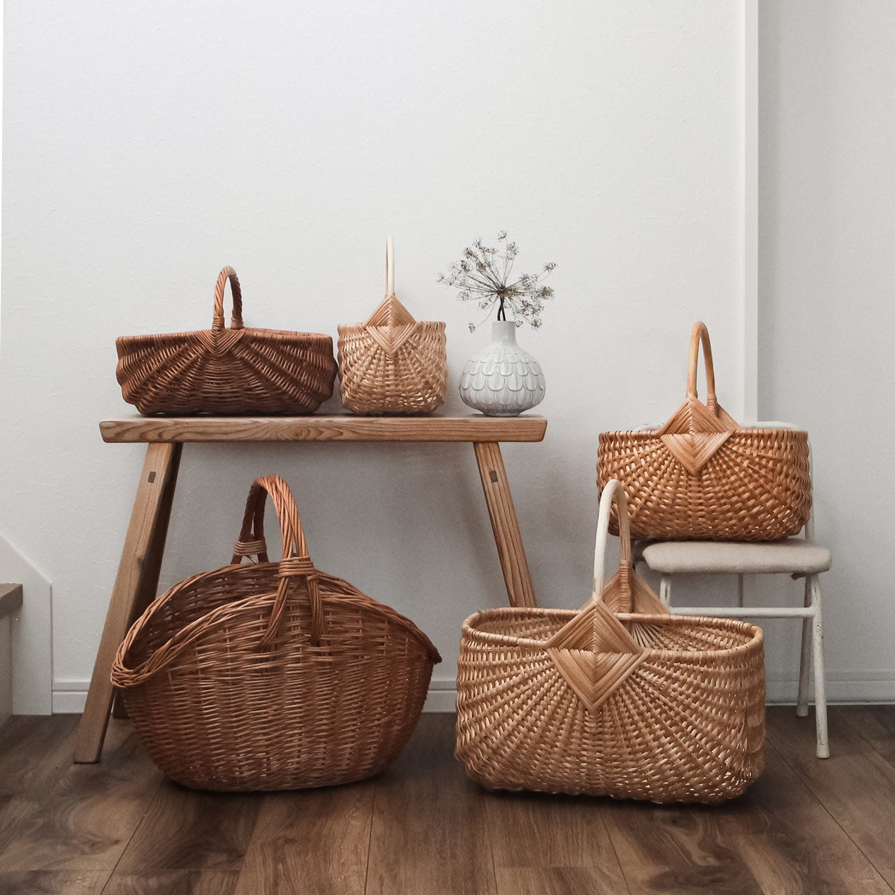 ラトビアの工房で作るハンドメイドかごマッシュルームバスケット M 柳 取っ手付き やなぎ かご ハンドルバスケット 北欧 – くらすかたち。