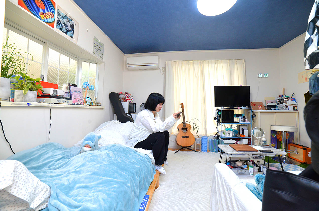 白と水色を基調とした音楽を楽しむワンルームこだわり“部屋”FILE。