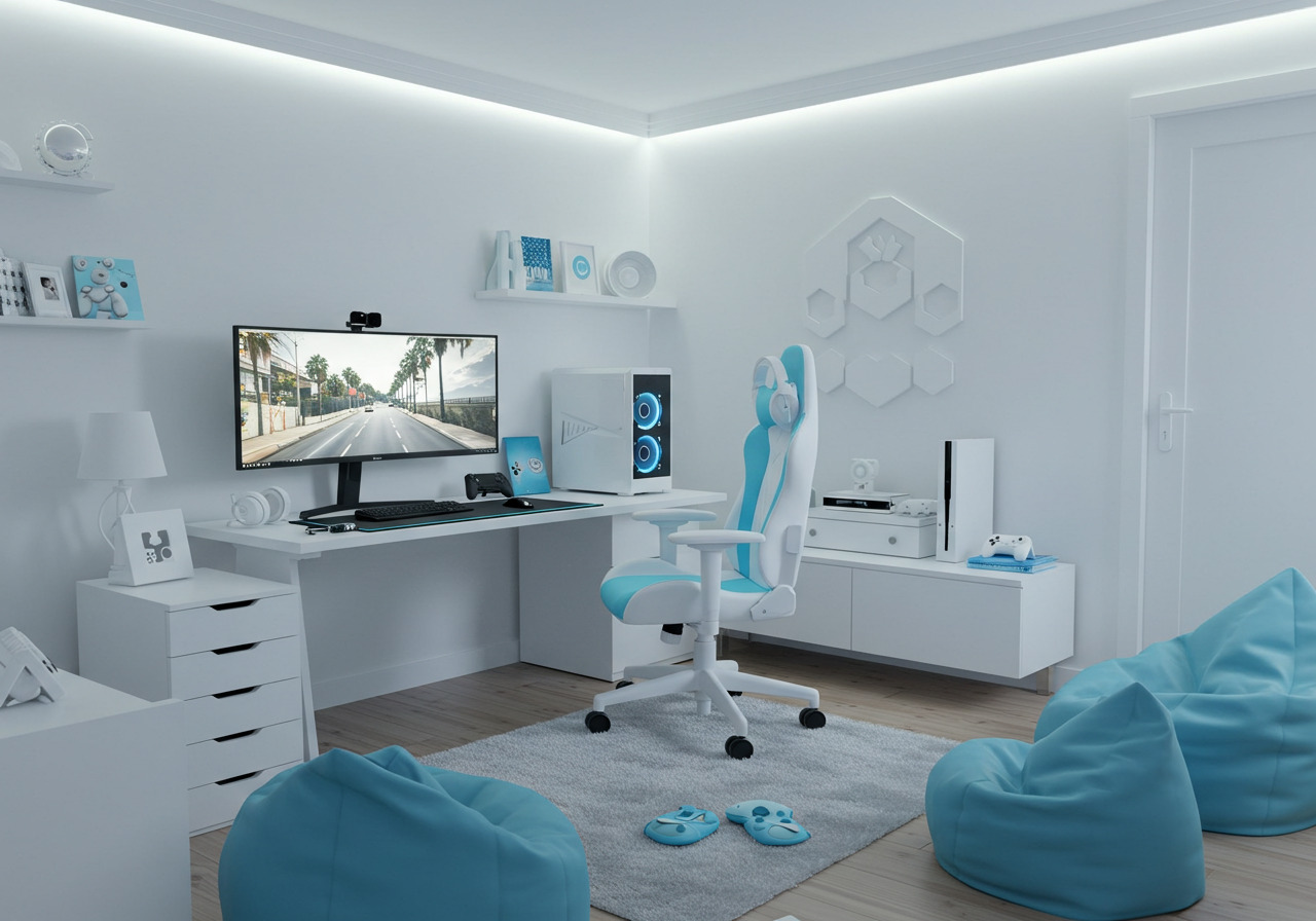 青色・水色のゲーム部屋を作ろう! ゲーミングデスクや女子向けのかわいい雑貨。