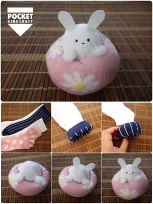 イースタークラフトの斬新アイデア!「靴下deイースターバニー」季節の工作アイデア集- こうさくポケット。