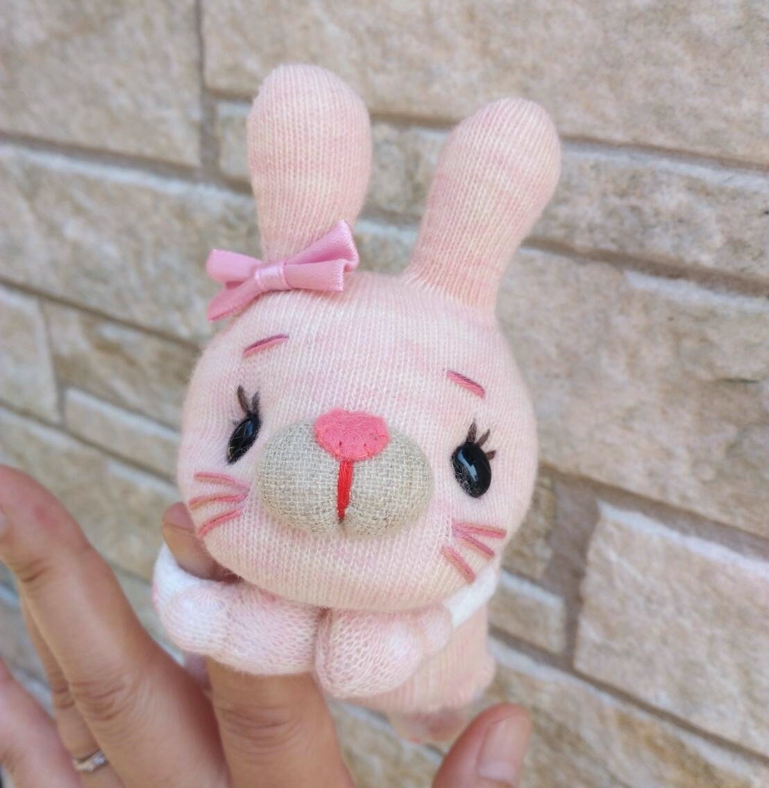 ハンドメイド ソックドール ウサギちゃん ソックラビット⑧ 靴下で作る人形👧 作り方はプロフィール→YouTubeをタップ♪ハンドメイド作家ハンドメイドダイソー作り方はyoutubeで見てねソックスモンキーhandmade。