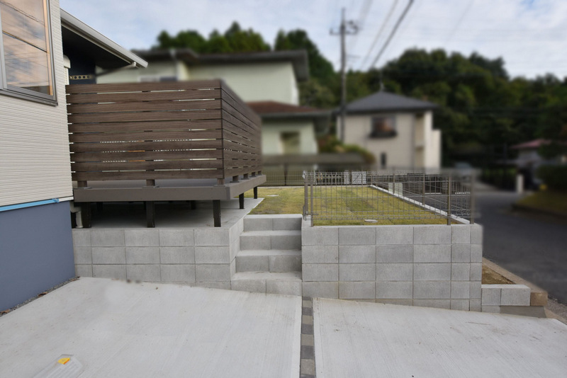外構施工例一覧 ウッドデッキ・コンクリートブロック・スロープ・工事費用100万円 ~ 150万円画像表示 外構工事のガーデンプラス。