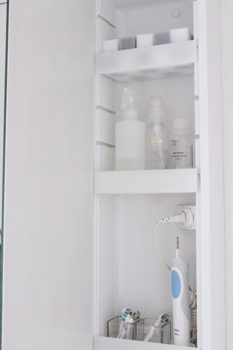 セリア モノトーンのメラミンスポンジ 洗面台鏡裏収納削ぎ家事研究室。