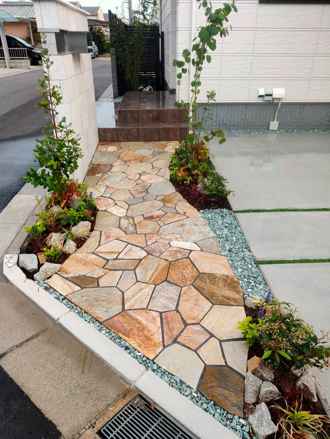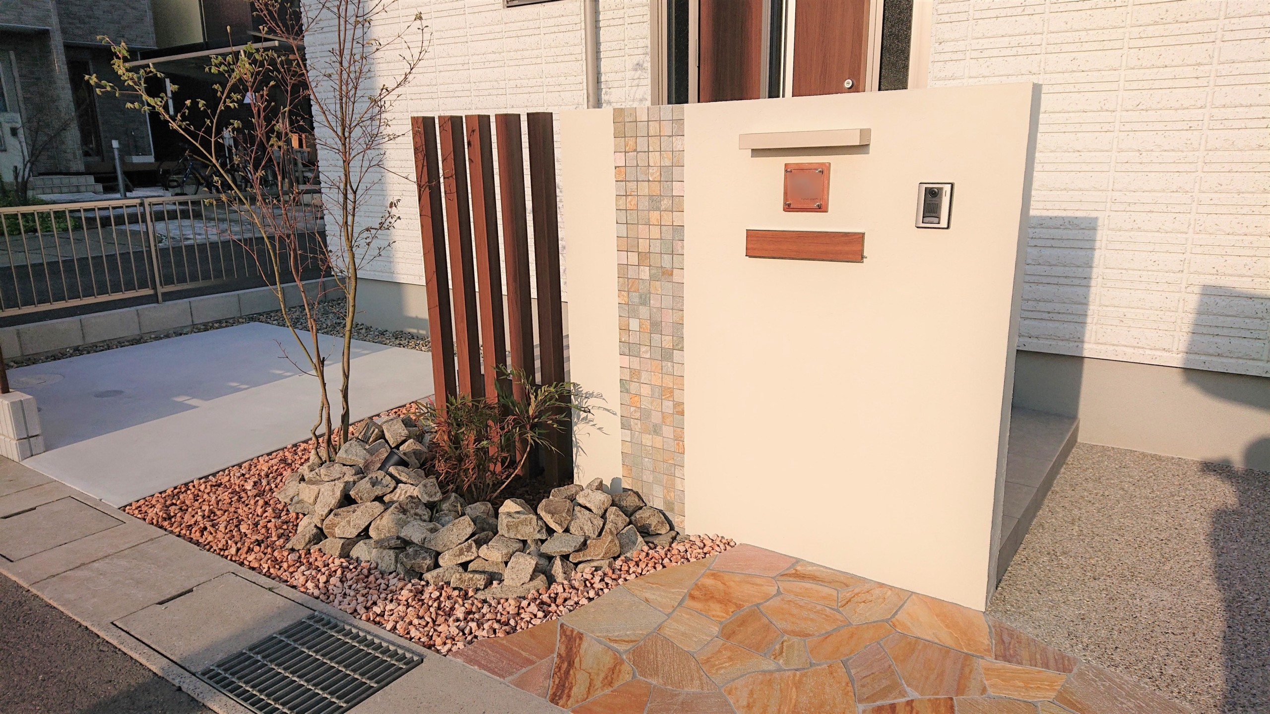 自然石でおしゃれな玄関まわり:千葉のお庭・外構専門店お得な情報更新中スペースガーデニング。