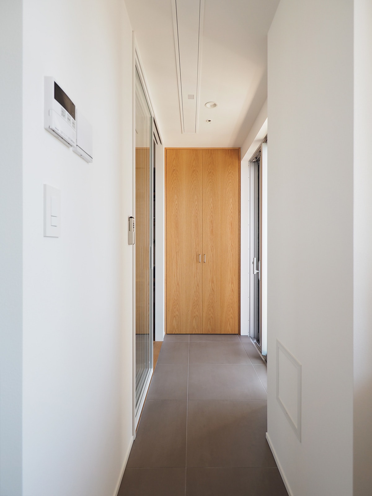 温かみのある木目天井と自然光が映える、心地よい空間へと導く廊下 - 事例写真「変形地に計画した全館空調の住まい」注文住宅のハウスネットギャラリ。