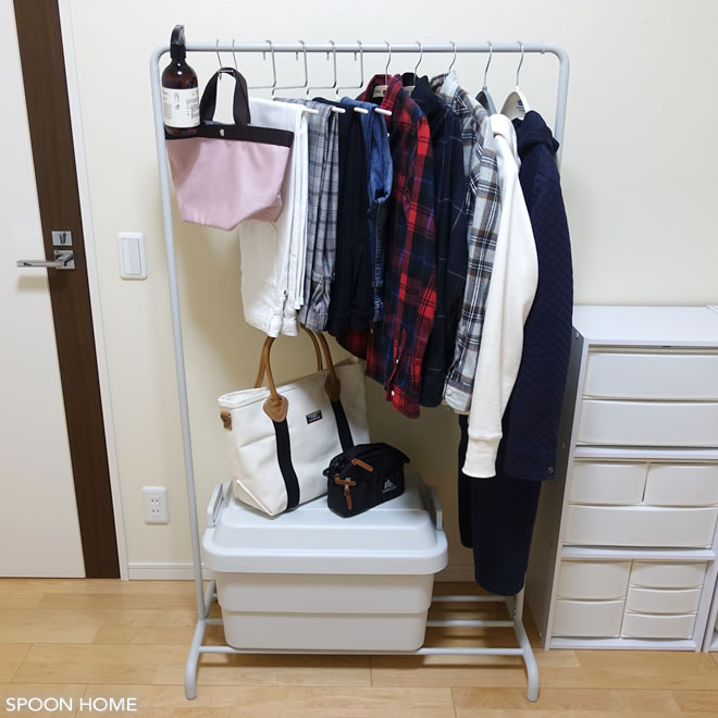 スリムでおしゃれ。無印良品「スチールハンガーラック」の収納例をブログでレポート。
