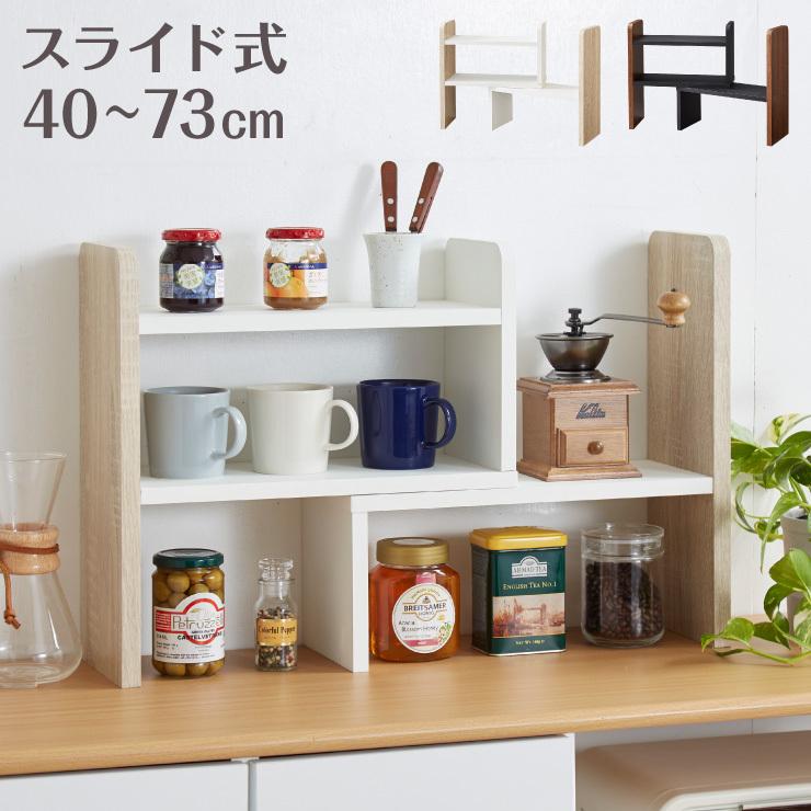 伸縮カウンター上ラック キッチンラック キッチン 収納 カウンター上 引き出し 調味料 ラック スリム 両面 調味料ラック 伸縮 木 木製 キッチンカウンターおしゃれ 収納 対面 ぼん家具 KRA945063公式 インテリアのゲキカグ。