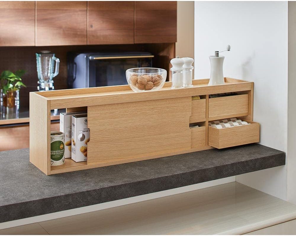 前後から使える、キッチンカウンターの上のおしゃれな小物入れ収納 幅60cm。