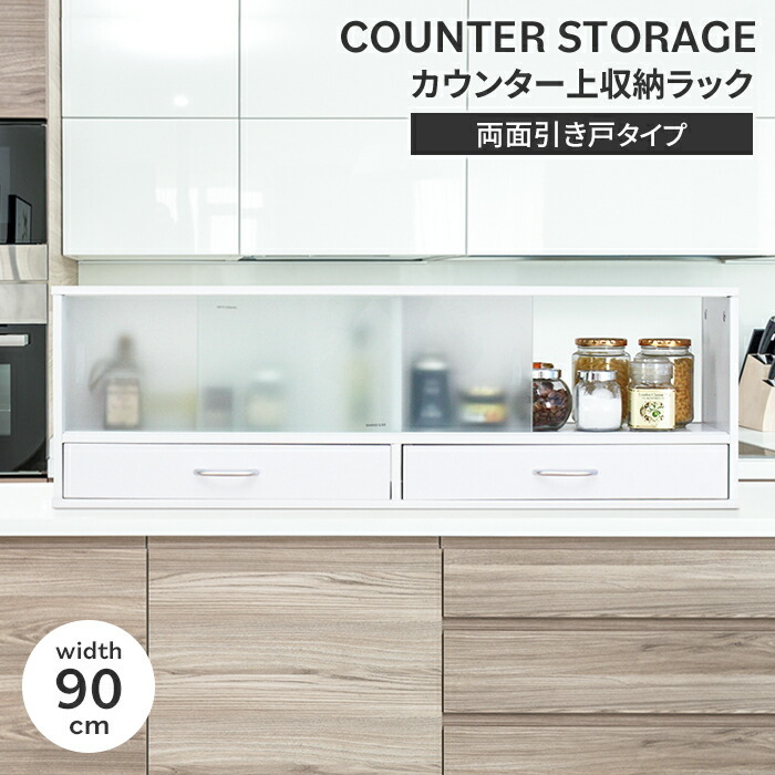 カウンター上収納 ラック 幅90 ガラス扉 食器棚 両面開閉 キッチンラック スパイスラック 収納 引き出し おしゃれ ロータイプ -ザッカーグplus - プレゼント&ギフトのギフトモール。