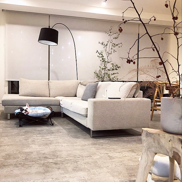 家具を新調しました😊 BoConceptのインテリアプランナーの方と相談し、ラグはそのままに、マッチする家具を相談しながら決めました。素材感やカラーで全く部屋の印象が変わるので、何度も再考して辿り着いた新しいリビング。 以前の家具よりボリュームがある物を選び。