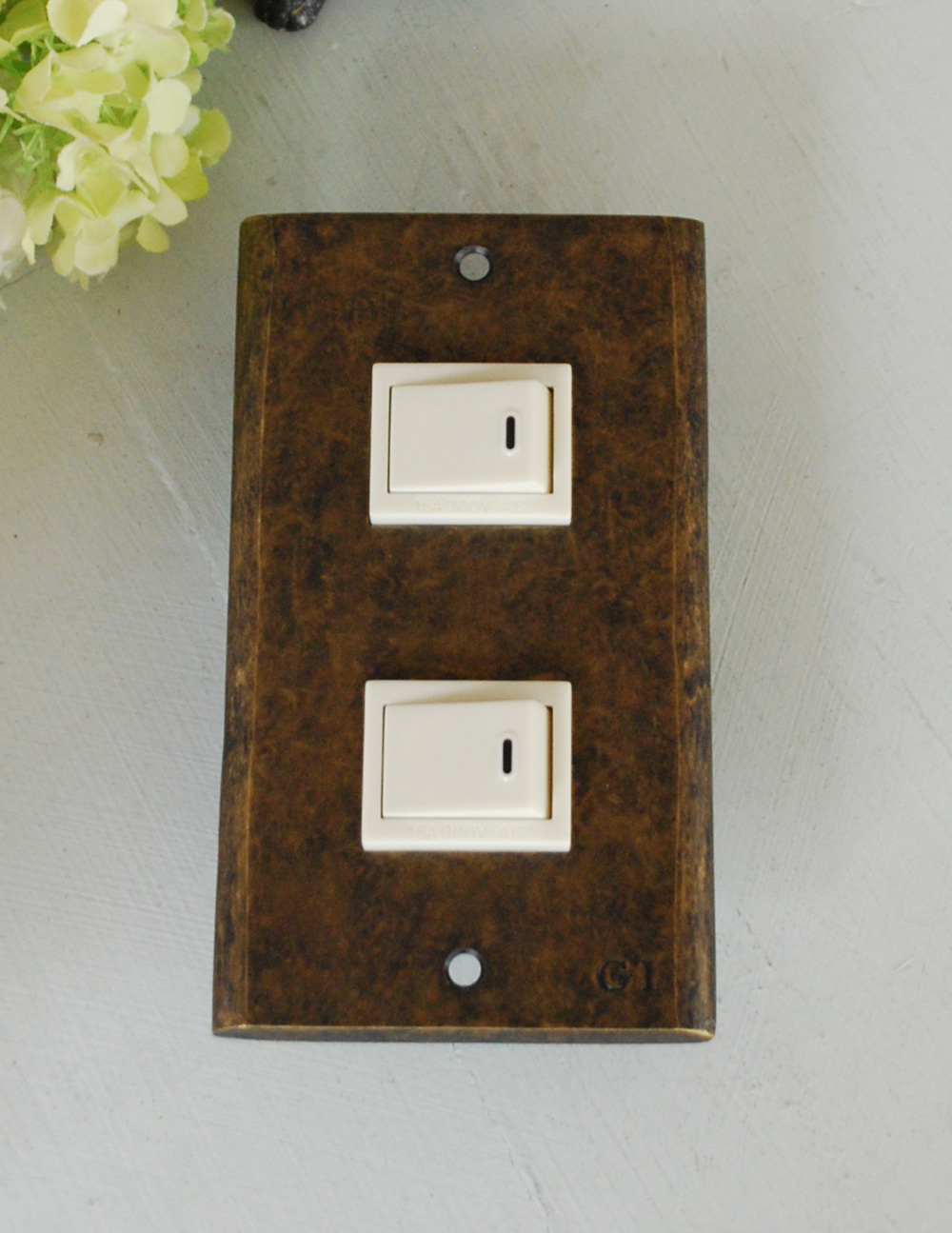 スイッチカバ− コンセントカバー スイッチプレート コンセントプレート おしゃれ 照明 アンティーク調 オーク 2口 スイッチプレート フック。