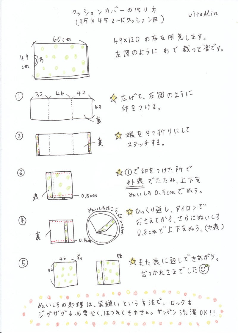 レシピ 超簡単☆クッションカバーの作り方vita Min*handmade。