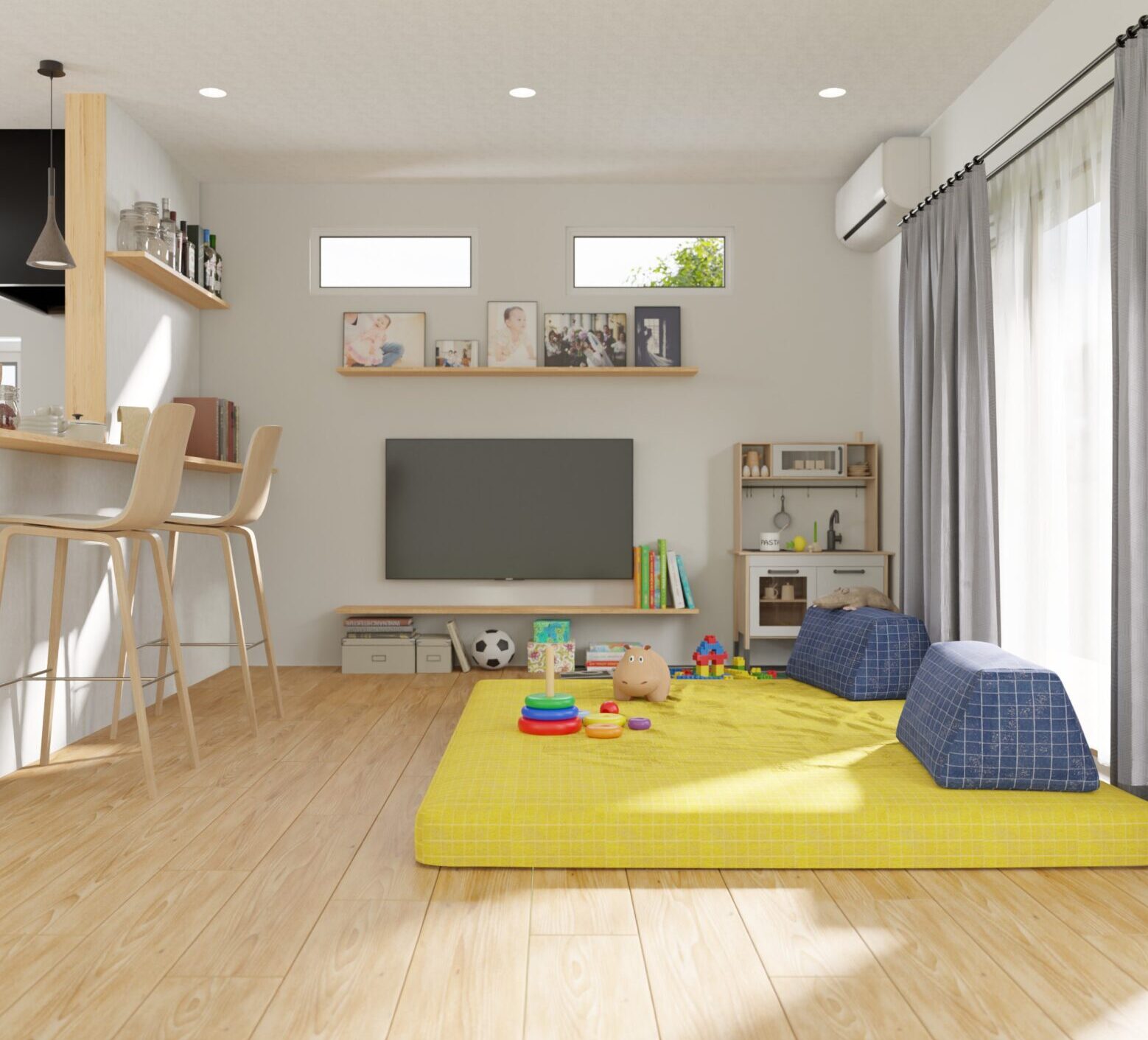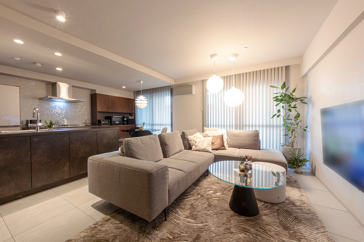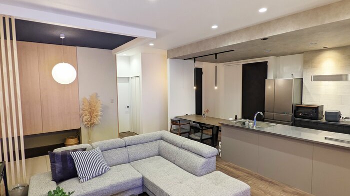 高低差を活かしたキッチンカウンター&リビングでのコーディネート。ローソファ百景9 - HAREM MAGAZINE by ローソファ専門店HAREM。