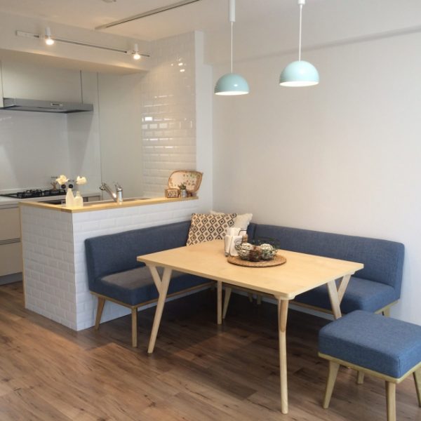 狭いお部屋には ダイニングソファ という選択を!広々としたレイアウトにしようキナリノ。