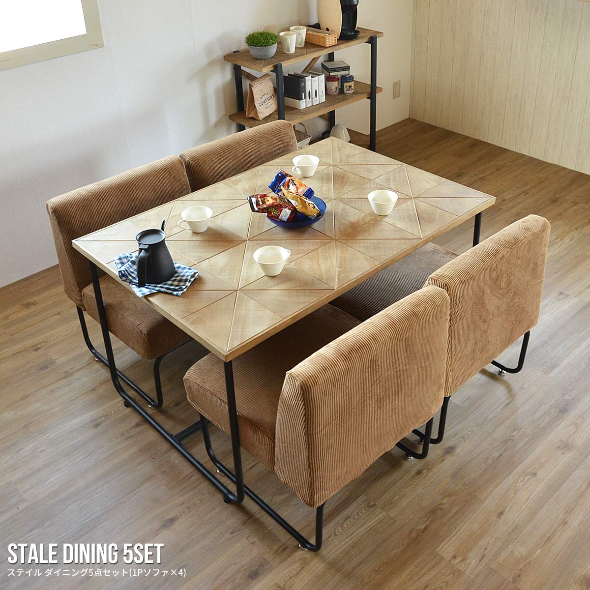 クーポン配布中 ダイニング5点セット STALE ステイル ダイニングテーブルW123cm 1人掛けソファ×4 リビング キッチン カフェスタイルコンパクト 背もたれ おしゃれ 食卓用 天然木 デザイン ブラウン グリーン 在宅勤務 テレワークライフスタイルショップFUNFUN。