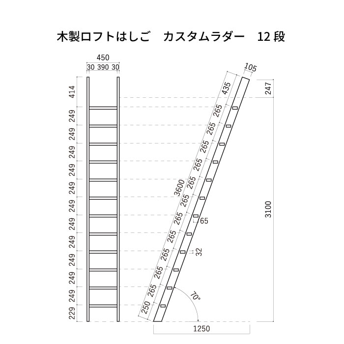 楽天市場階段6段幅35cm長さ150cm高さ180cm ロフト用登れる国産無垢ひのき階段家具間口35cm背の高い階段 画像はくるみオイル仕上げ サイズ変更見積もり無料: ひのき家具専門店ヒノキ・ワークス。