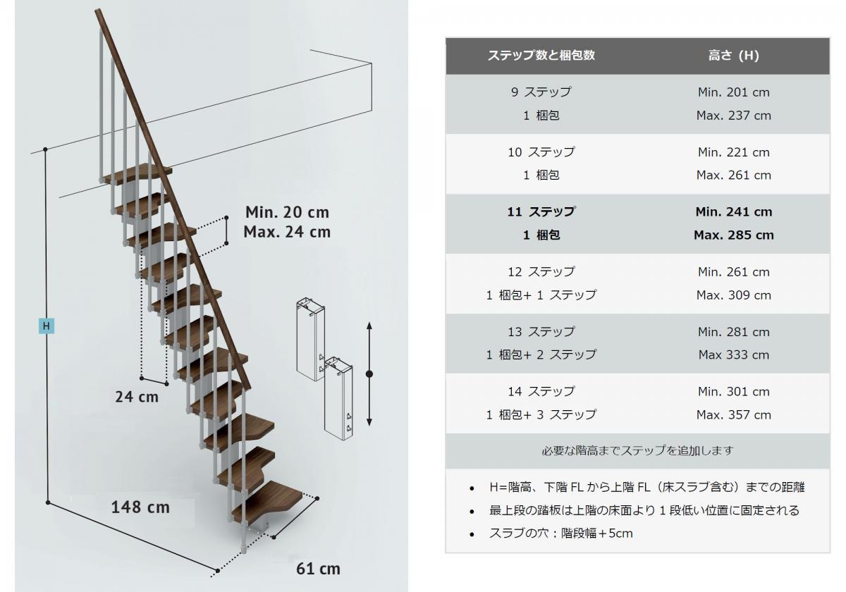 ロフト階段の「DIXI」寸法表一覧ご希望のレイアウトがきっと見つかるはず!PYRAMID:階段キットやその他建材情報や納入事例。