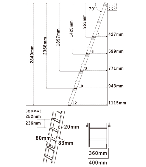 楽天市場 伸縮ロフトはしご 手すりなしタイプ 8尺用 使用高2380〜2410ミリ: 木材倉庫 ムック。