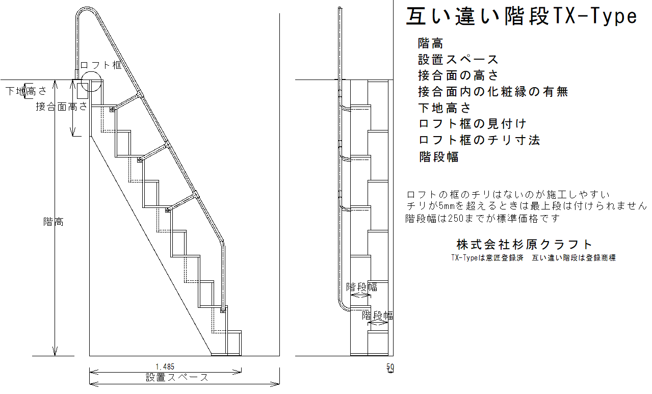 ロフトの階段互い違い階段VX-Type・LX-Type注文表ロフトの階段。