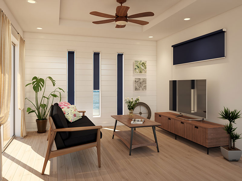 木造2階建て住宅のカーテン施工例『プレーンシェードとロールスクリーン』カーテン専門店 熊本 光の森 インテリアヒルズ。